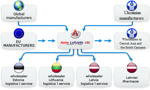 Astra Logistic Ltd "is a provider of pharmaceutical logistics services to third-party (3PL) - manufacturer of pharmaceuticals, personal care products and nutritional supplements, which are both within the EU and abroad (USA, India, China, etc.) and specializes in supplying these products to final consumers in the Baltic countries and and to the republics of Central Asia and the South Caucasus. The company provides high-quality logistics services in the supply chain to producers and wholesalers as to local and international markets. We are engaged in transportation, maintenance, storage, distribution, consolidation and processing of pharmaceutical products - marking and repackaging in accordance with customer requirements.