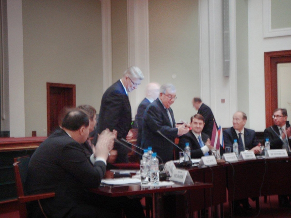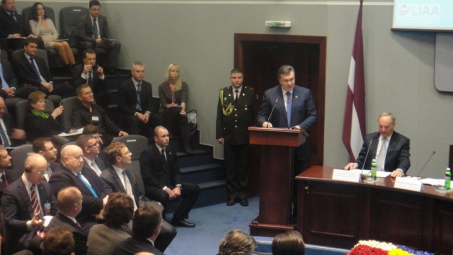 Участие во встрече Президента Латвии А.Берзиньша и представителей правительства с предпринимателями, посвященной результатам визитов латвийской официальной делегации в Азербайджан, Туркменистан и Казахстан, Дом Черноголовых, Рига, Латвия, 20 июня 2013 год