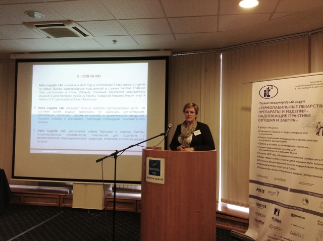 С 17 по 18 сентября 2013 года в Москве прошел Первый международный Форум «Термолабильные лекарственные препараты и изделия – надлежащие практики сегодня и завтра», организованный Некоммерческим Партнерством «Холодовые цепи и биотехнологии». Более 100 человек приняли участие в работе Форума – представители как российских, так и иностранных фармпредприятий, аптечных сетей, ассоциаций производителей фармпрепаратов, поставщиков оборудования и услуг для фармотрасли, а также представители государственных регулирующих структур. Первый день Форума был посвящен вопросам надлежащей практики обращения термолабильных препаратов и изделий. На второй день Форума рассматривались вопросы модернизации фармацевтической отрасли в России: обеспечение качества как основной элемент развития. В работе Форума приняли участие 4 сотрудника «Astra Logistic Ltd.”, представителем латвийского офиса компании «Astra Logistic Ltd.” был также сделан доклад на тему «Успешный европейский опыт в решении проблем холодовой цепи при поставках медикаментов».